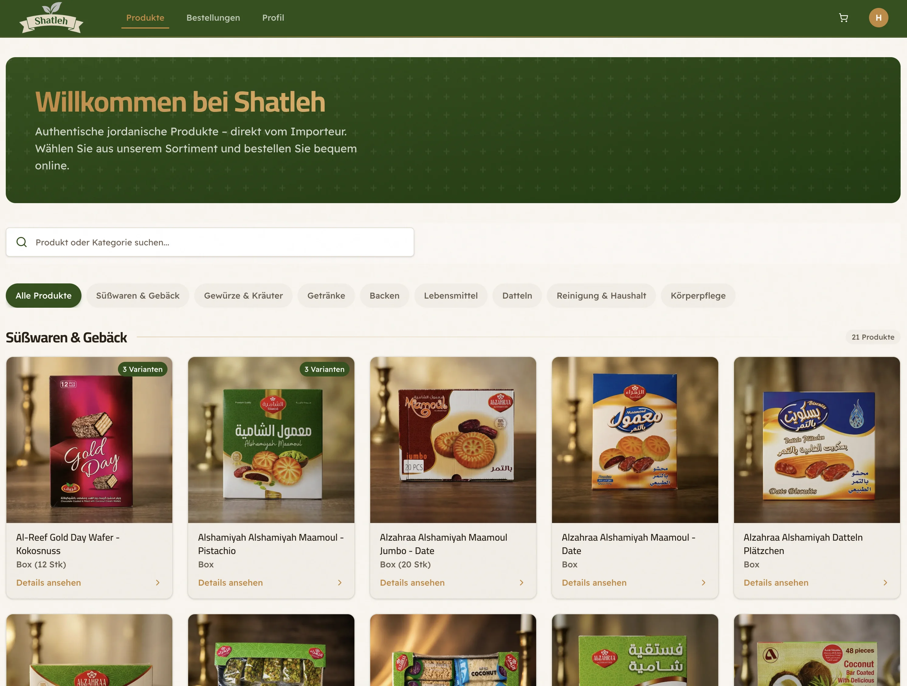 B2B Bestell-Webapp. Orientalischer Lebensmittel-Großhandel. Komplettes Bestellsystem für Supermärkte, Kiosks und Gastronomie.